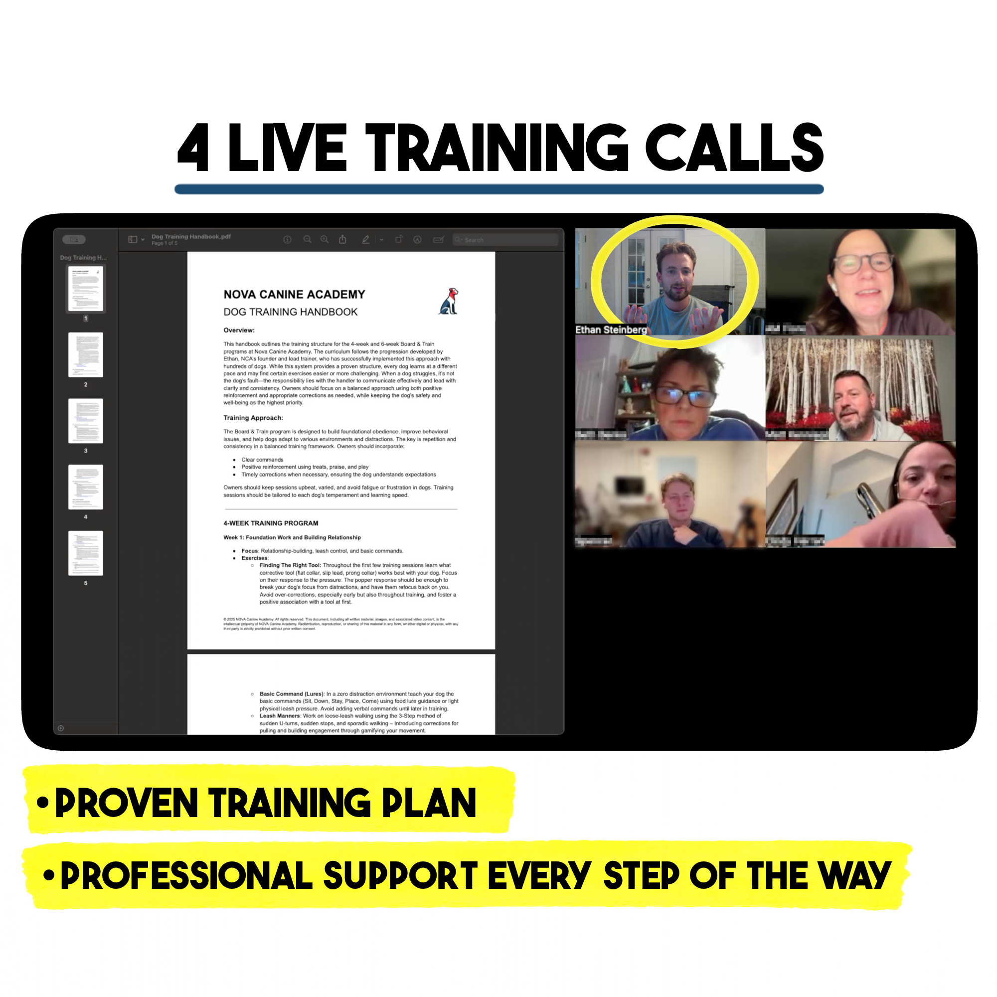 I've spent 3 years developing this in-depth handbook that details every single step of my 4 and 6 week board & train programs. It includes over 350 minutes of actual real training footage with real dogs and step-by-step instructions