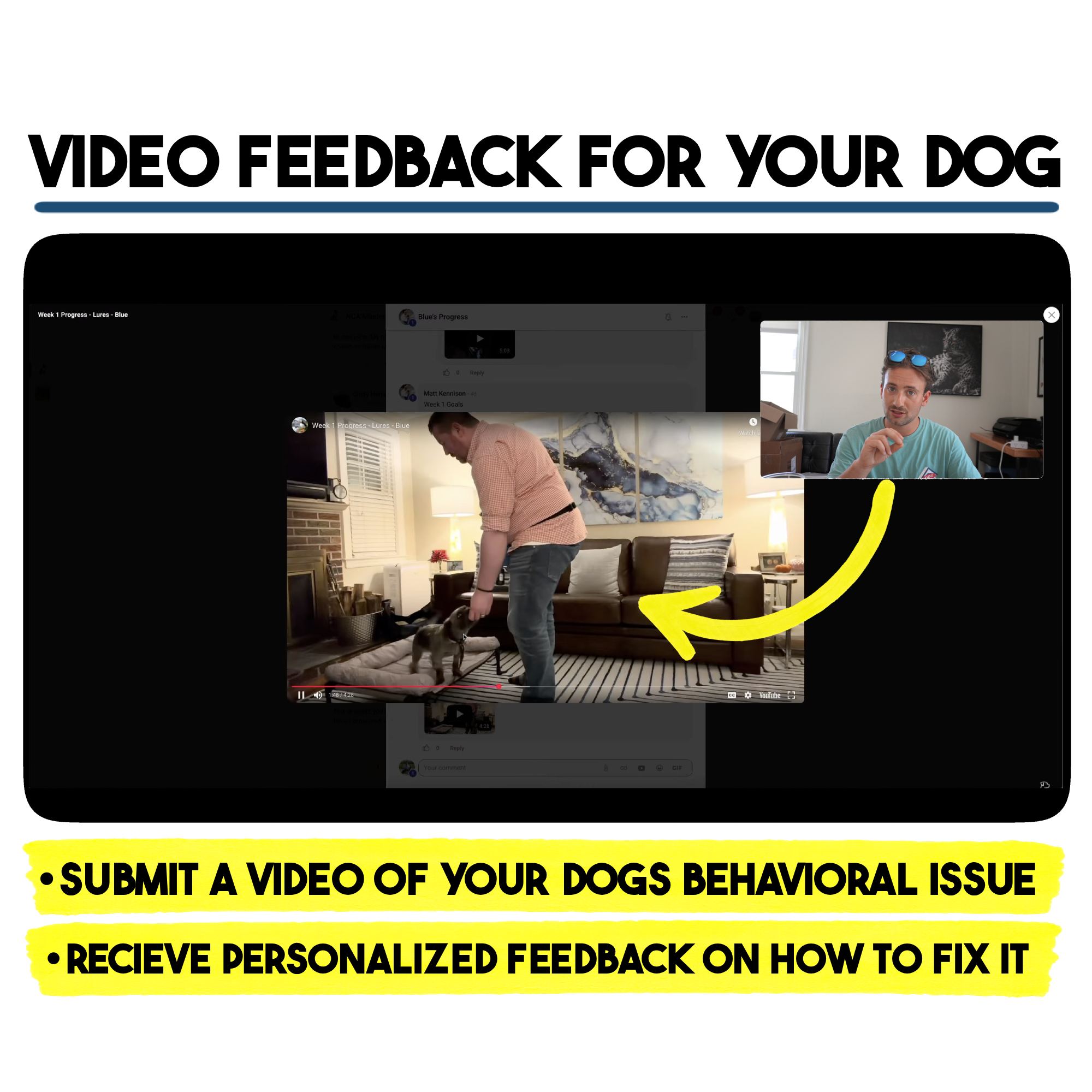 Upload videos of your dog's progress at each checkpoint and I'll give you feedback on exactly what you're doing right and wrong to keep you on track.